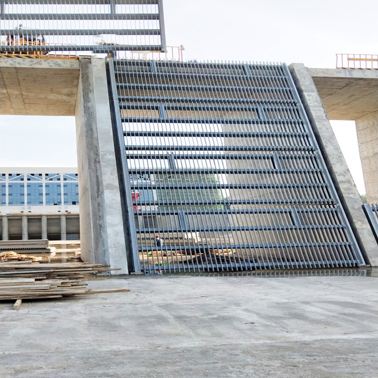 攔污柵一般設(shè)在設(shè)在進(jìn)水口前,用于攔阻水流挾帶的水草、漂木等雜物(一般稱污物)的框柵式結(jié)構(gòu)。攔污柵由邊框、橫隔板和柵條構(gòu)成,支承在混凝土墩墻上,一般用鋼材制造。柵條間距視污物大小、多少和運用要求而定。