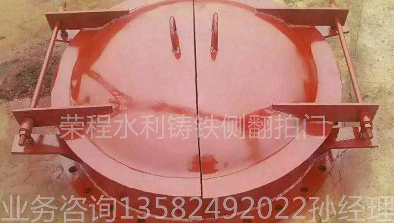 鋼拍門裝在水渠道或排污管出口處,利用水力和門體自重啟閉的單向閥門,防止外水倒灌。分別有玻璃鋼拍門和鑄鐵拍門等金屬拍門。鋼拍門具有流道正向單向開啟和反向關閉的作用。配重式 拍門 借助于配重的平衡作用,在水流的作用下使門頁自動開啟或關閉,或稍加外力作用使門頁開啟或關閉;浮箱式 拍門 則利用門頁在水中的浮力,在水流的作用下使門頁開啟或關閉。