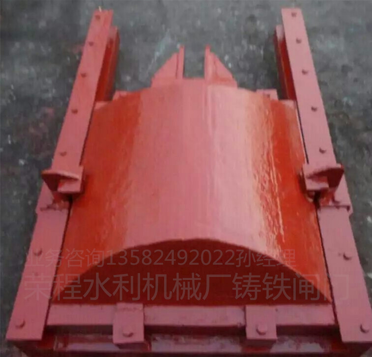 拱形鑄鐵閘門是公司20多種閘門中的一種閘門,是用來開啟和關閉水利工程的過水孔口的活動結構。閘門的作用是按需要局部或是全部開啟、關閉過水孔口,以用來調節下上游的水位、排放流量,廣泛應用在農田的灌溉、農業經濟開發、水產養殖、污水處理、河流(管道、水閘、涵洞、堤壩)水庫、水利發電站,是抗旱、防洪、發電、蓄水、過木、通航以及排泥沙、其它漂浮物及冰塊等的退、進水工程地專用設備,平原、山區或無電地區都可使用。